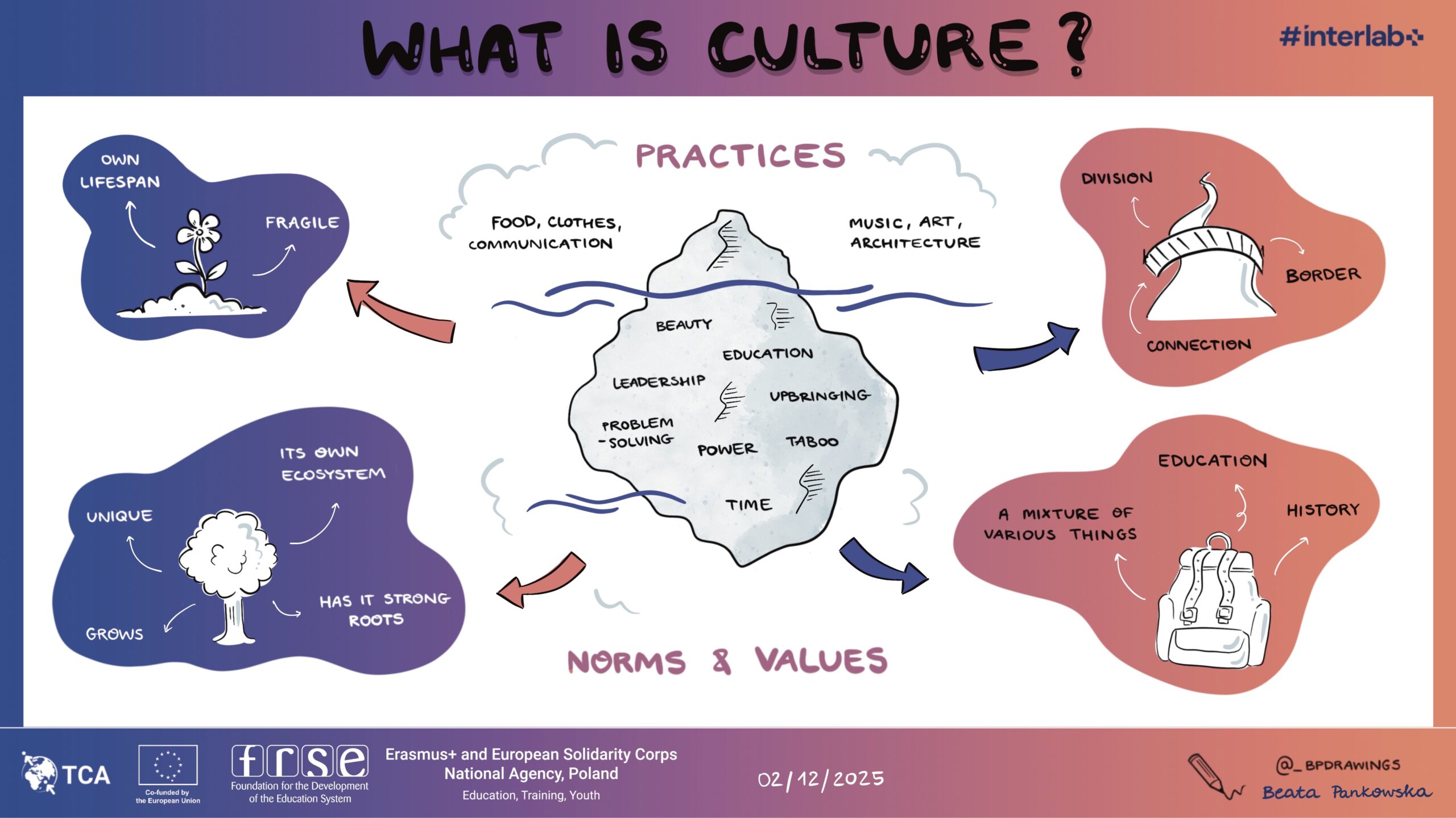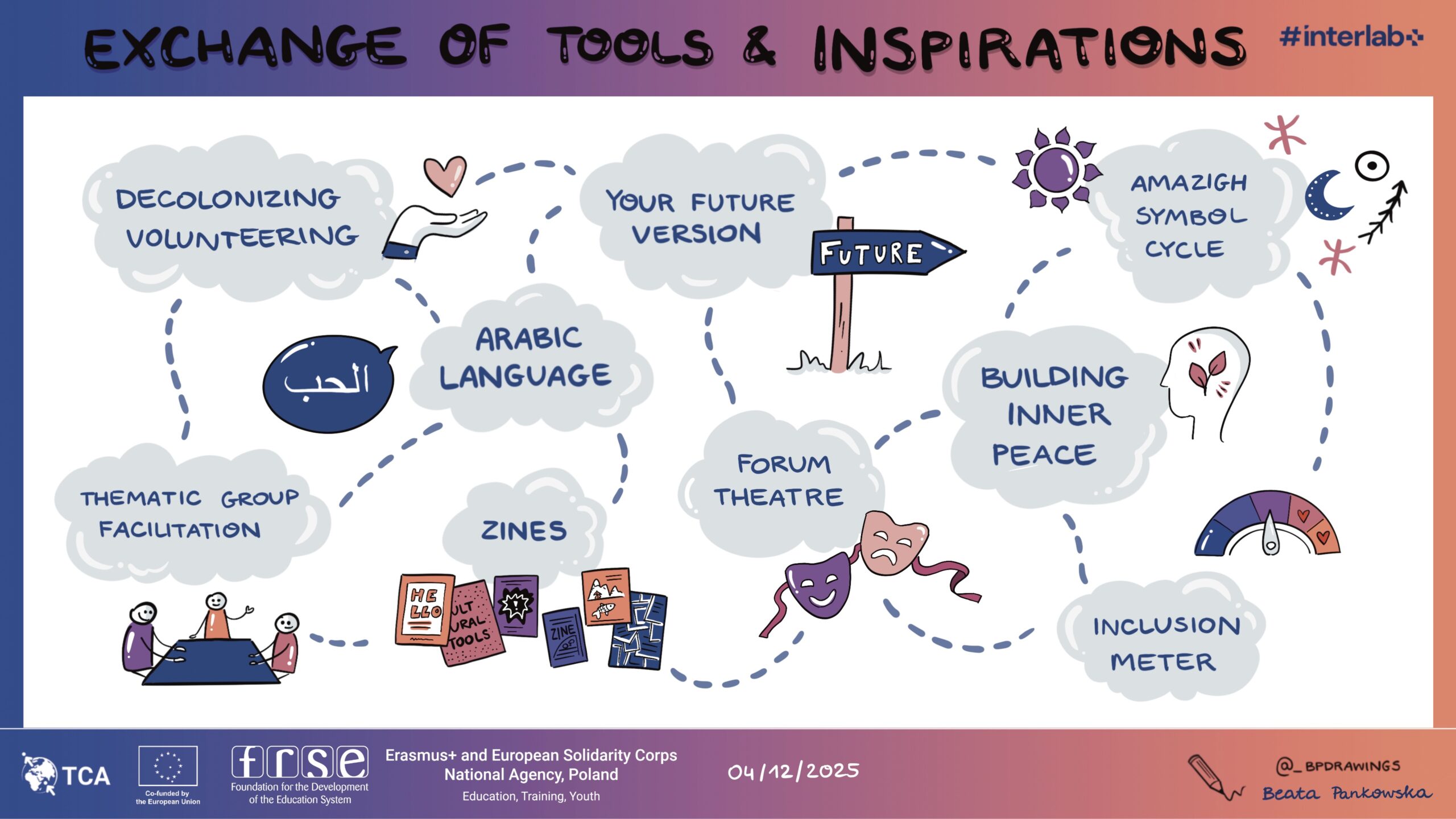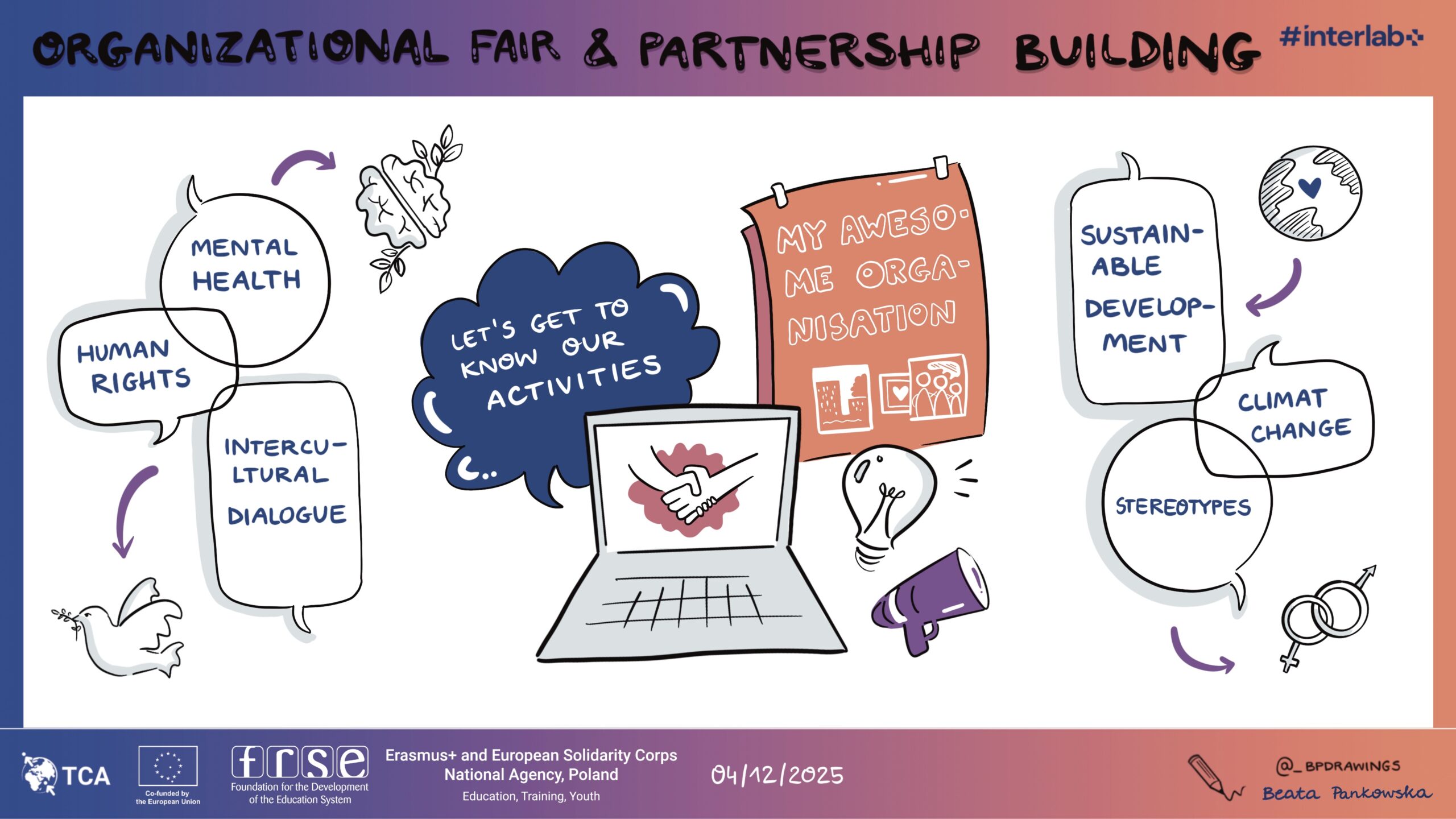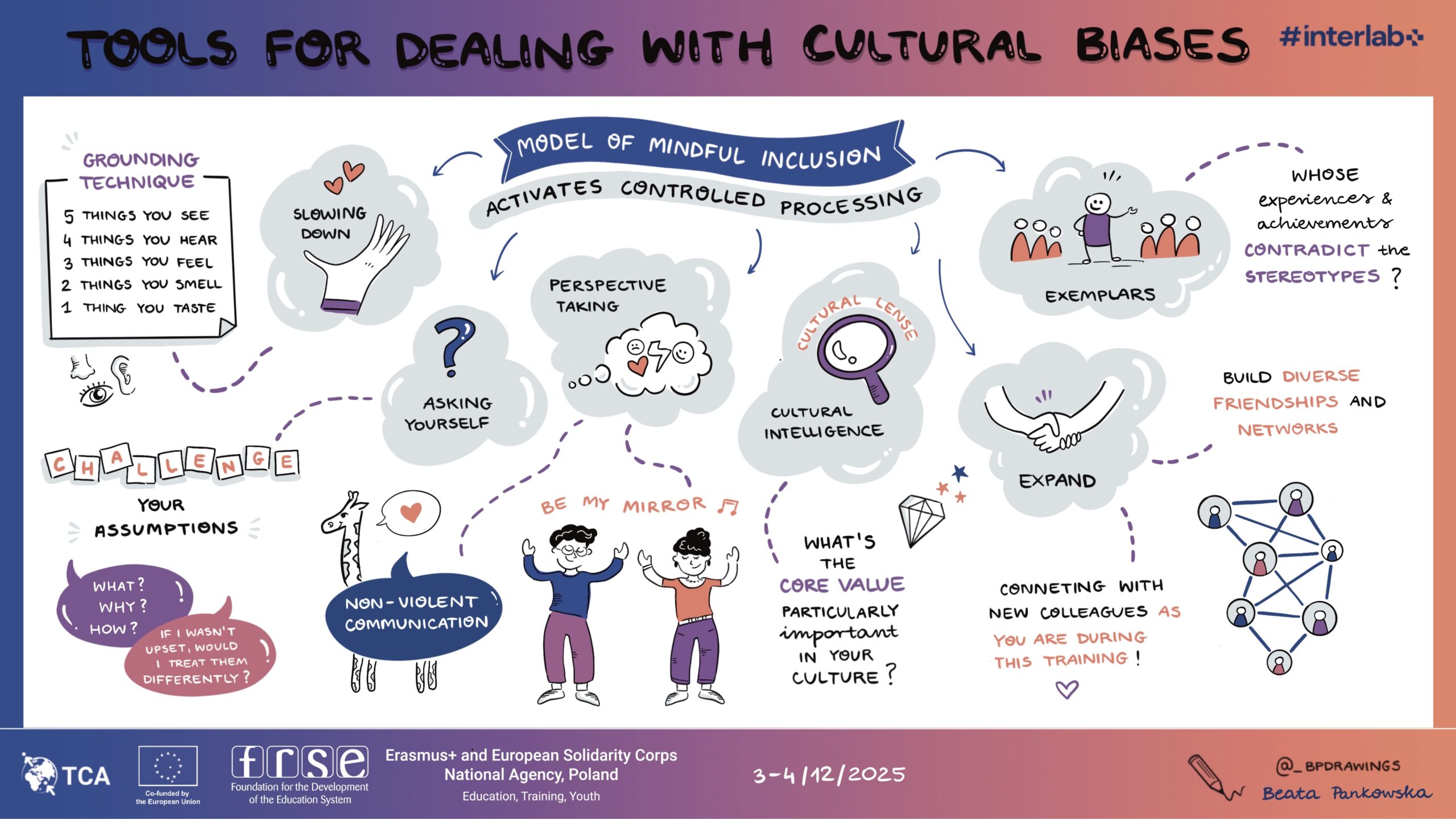 Szkolenie odbyło się w ramach trzeciej edycji projektu #interlab+ skierowanego do beneficjentek i beneficjentów programu Erasmus+, a ja miałam okazję towarzyszyć temu wydarzeniu w roli graphic recorderki.